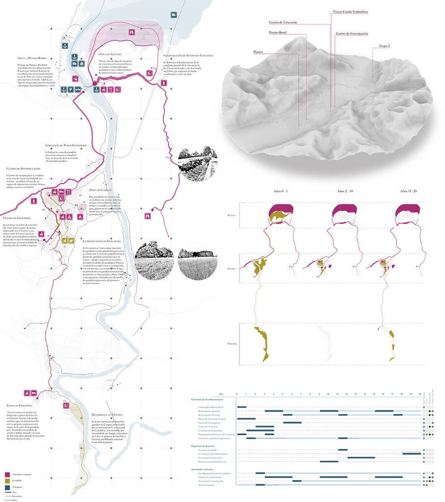 El proyecto surgió del método y conclusiones de estas tres tareas, por lo que, en la segunda parte del taller, equivalente a otro semestre, se le solicitó a cada tesista que diseñara su propuesta consciente de la función, forma, materialidades y procesos ecológicos, sociales e históricos presentes en el sitio. Así, los imaginarios, los ideales de cambio y las propuestas programáticas decantaron en propuestas de paisaje alejadas de las convenciones propias de los proyectos de conservación en lugares extremos.