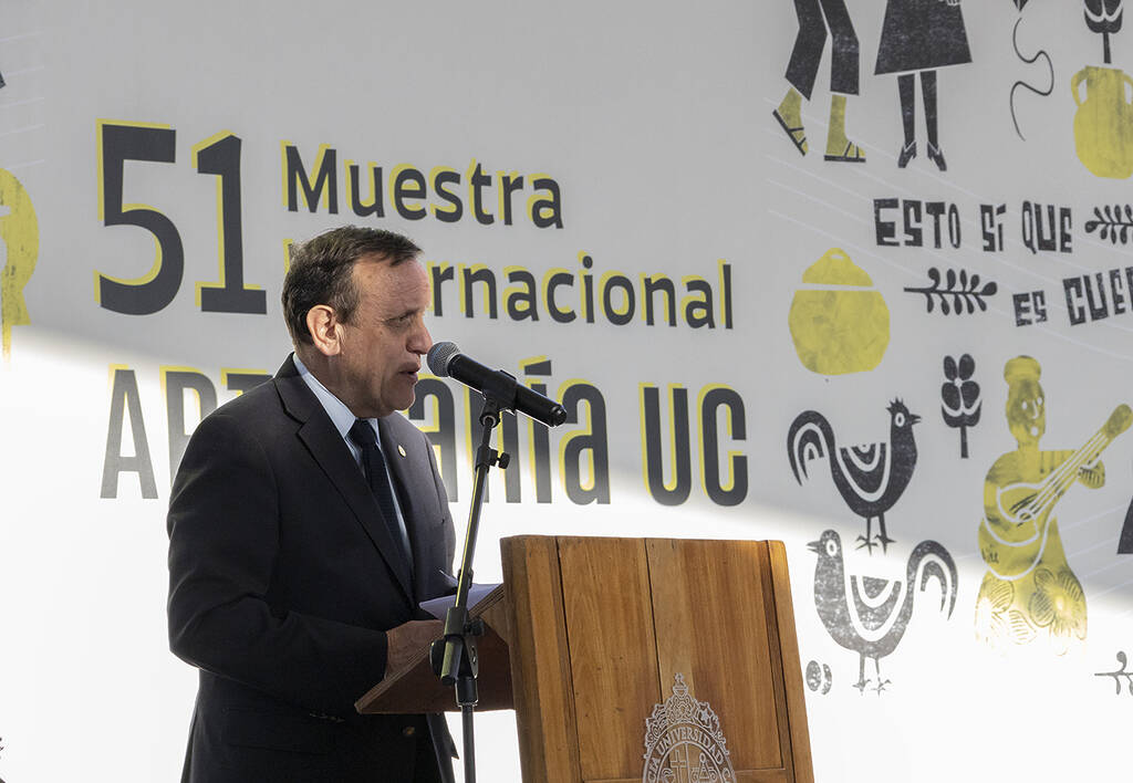 El Rector Ignacio Sánchez saludó al público presente y sostuvo que “es una gran alegría y un honor estar en una nueva presentación de la Muestra Internacional de Artesanía UC, que hoy cumple 51 años”, agregando que “nos complace darles la bienvenida a una nueva edición, que este año lleva por lema Esto sí que es cueca, en honor a nuestro baile nacional”.
