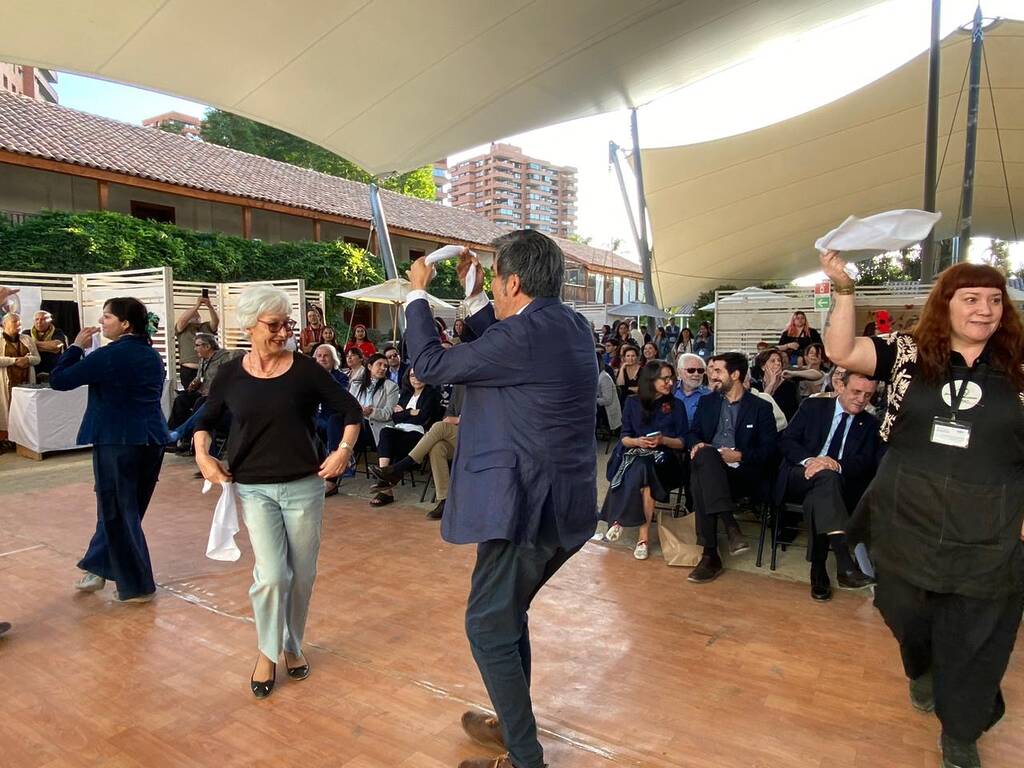 Junto con sus palabras, Greta Cerda interpretó tres cuecas en guitarra y voz, piezas que fueron bailadas por el público presente en el lugar, incluidas las autoridades asistentes a la ceremonia.