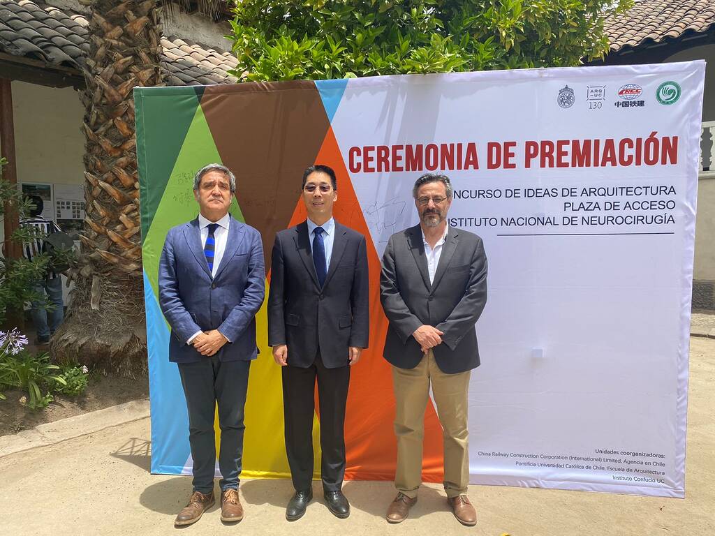 Hasta la Facultad de Arquitectura, Diseño y Estudios Urbanos UC llegó el Embajador de China en Chile, Qingbao Niu, para encabezar la premiación del concurso Ideas de Arquitectura para el diseño de la Plaza de Acceso de lo que será el nuevo Instituto de Neurocirugía de la comuna de Providencia, instancia organizada por la Pontificia Universidad Católica de Chile, dirigida a través de la escuela de Arquitectura; patrocinada por el Instituto Confucio UC; y auspiciada por China Railway Construction Corpation (International). CRCCI, Limited, Agencia en Chile, y la Sociedad Concesionaria Instituto Nacional de Neurocirugía S.A.