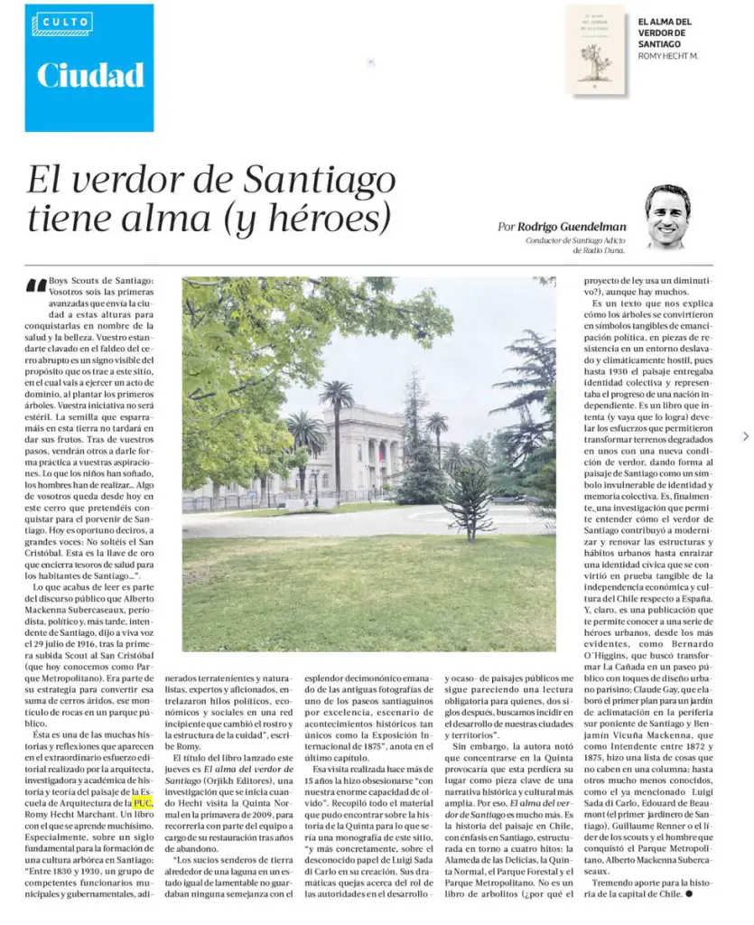 (La Tercera) columna de opinión del periodista Rodrigo Guendelman menciona libro publicado por la profesora Romy Hecht