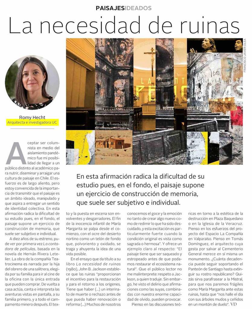 (El Mercurio) Columna de la profesora Romy Hecht: “La necesidad de ruinas”