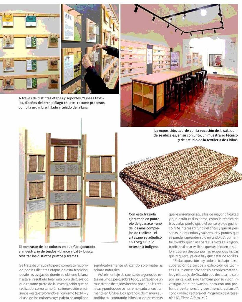 Revista Vivienda y Decoración de El Mercurio destaca la muestra “Líneas textiles, diseños del archipiélago chilote”, organizada por el Programa de Artesanía UC y el Centro Cultural Montecarmelo. Habla la directora del Programa de Artesanía UC, Elena Alfaro.
