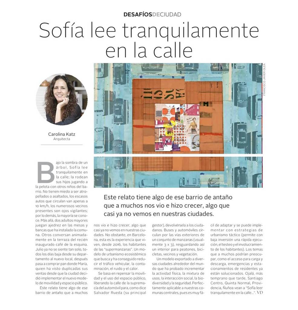 Diario El Mercurio publica la columna de la profesora de la escuela de Arquitectura, Carolina Katz, titulada “Sofía lee tranquilamente en la calle”.
