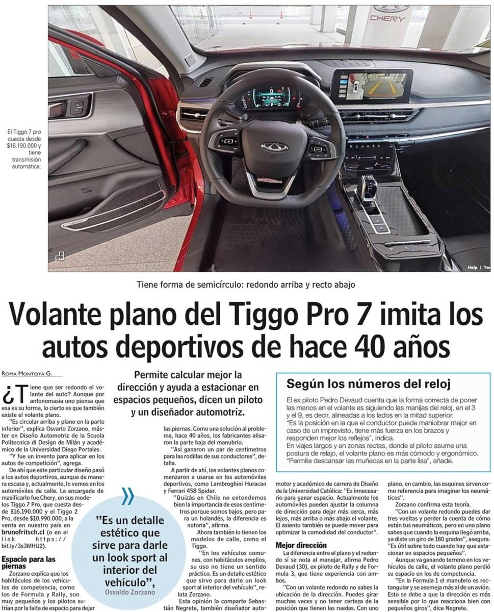 Volante plano del Tiggo Pro 7 imita los autos deportivos de hace 40 años
