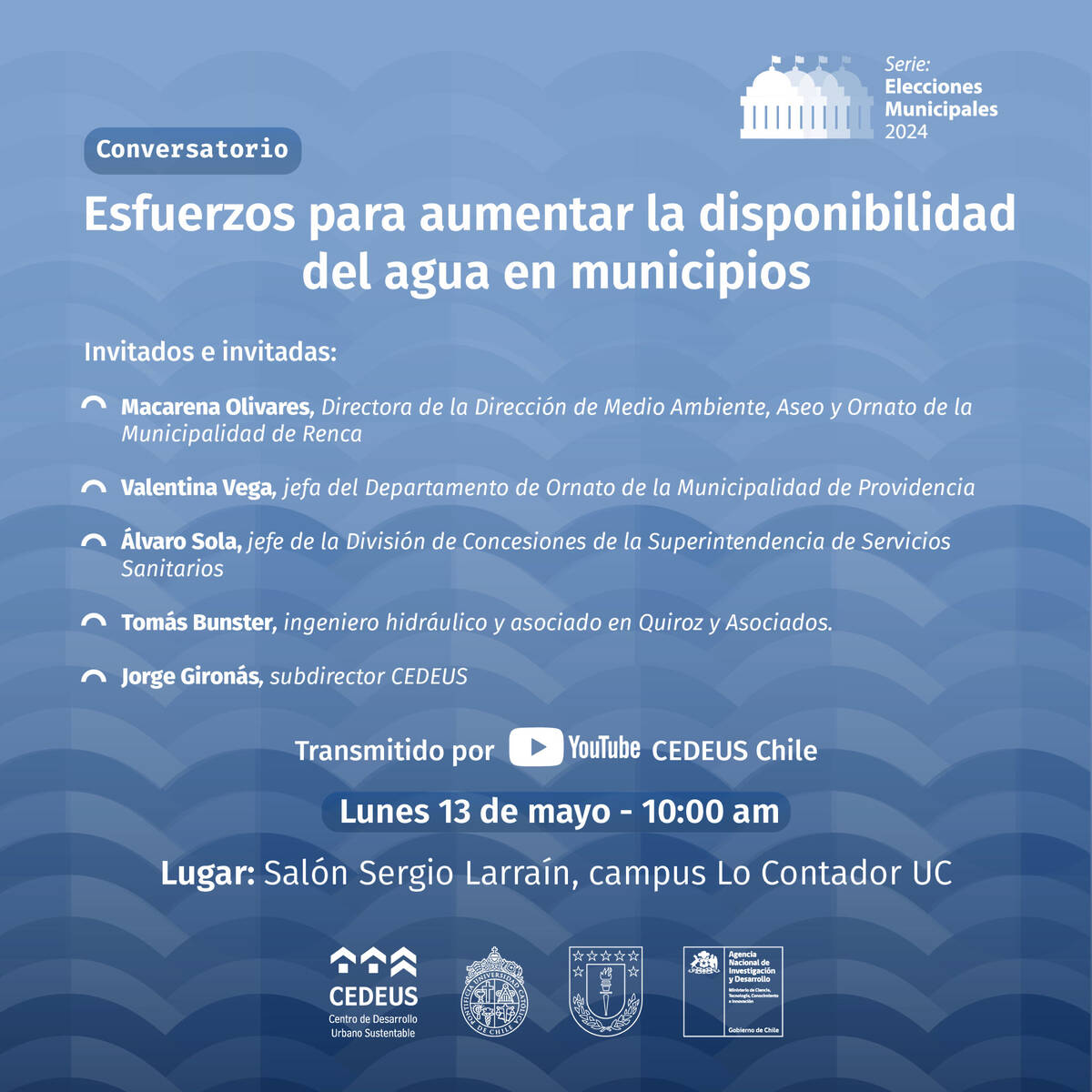 CEDEUS realizó el conversatorio “Esfuerzos para aumentar la disponibilidad del agua en municipios”, en el Campus Lo Contador UC.
