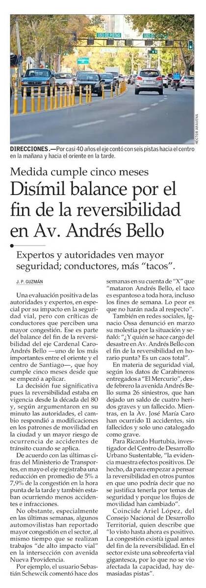 PRENSA I Disímil balance por el fin de la reversibilidad en Av. Andrés Bello